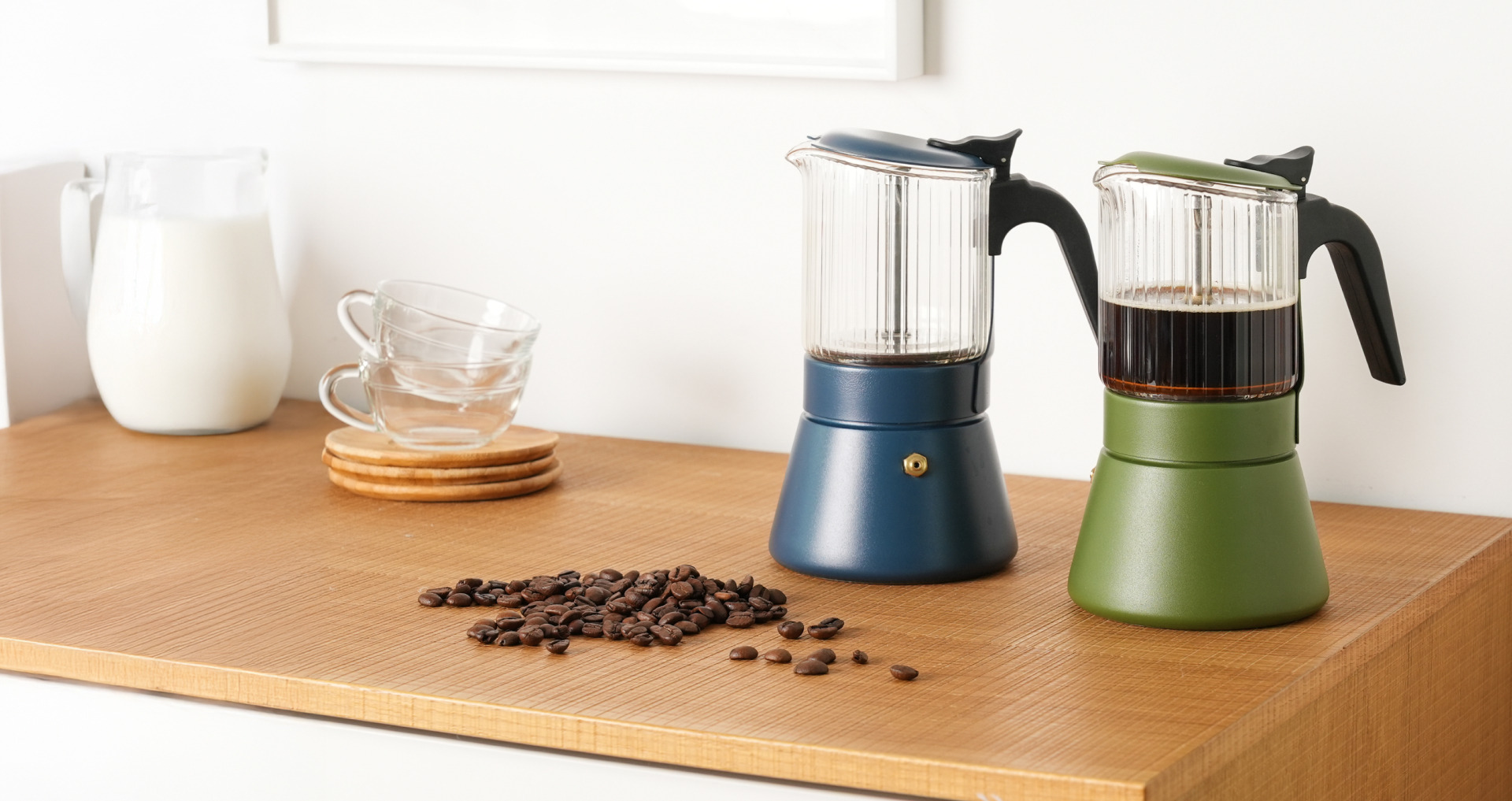 Und was die Persönlichkeit betrifft, enttäuscht die Clair-Kaffeemaschine ebenfalls nicht: Sie ist in zwei exklusiven Farben erhältlich — Marineblau und Oliv —, zwischen denen die Wahl schwerfallen wird. Sie passt auch zu jeder Gelegenheit, vom Frühstück zu zweit bis zum Familiennachmittag, in drei Größen für 4, 6 und 9 Tassen.