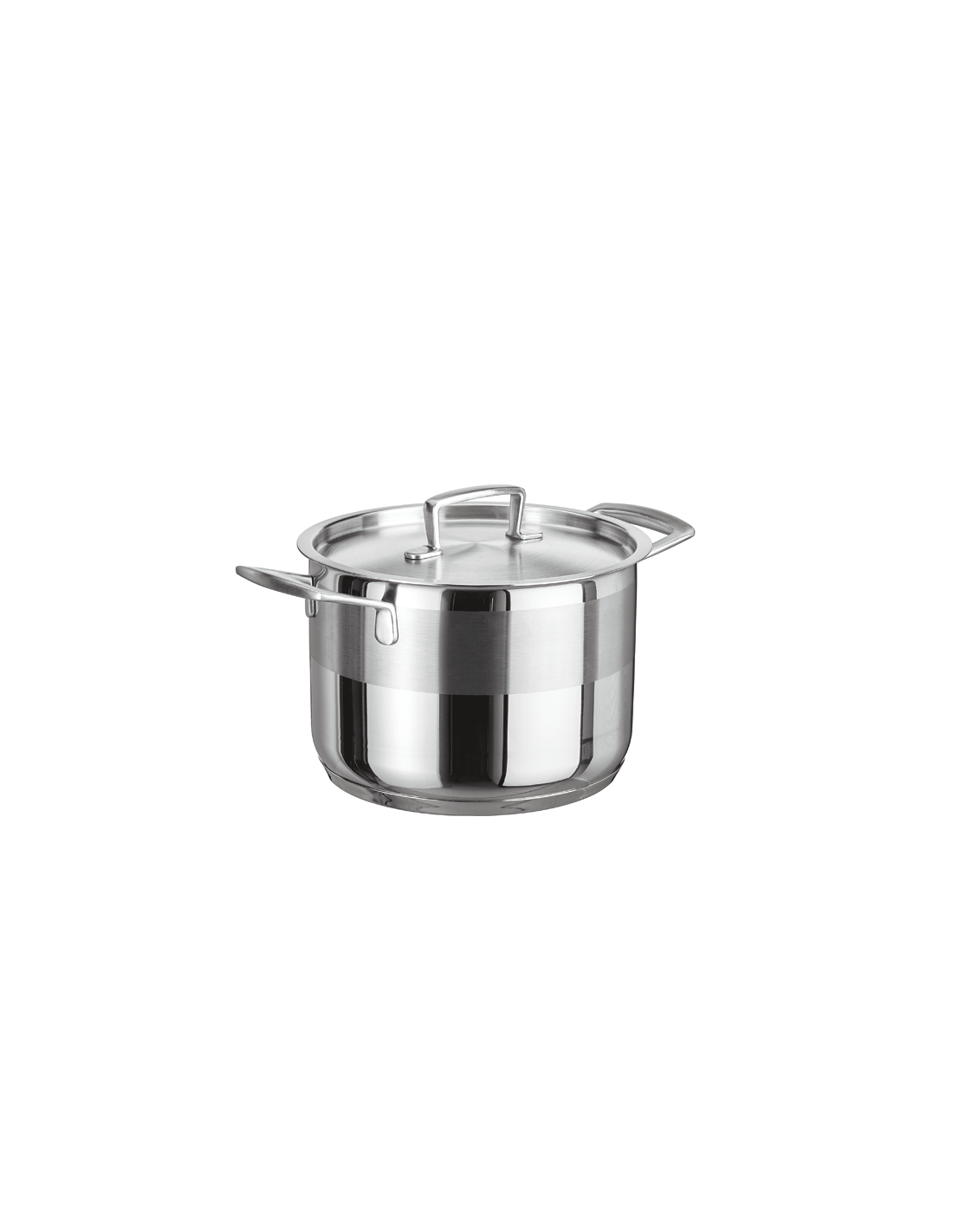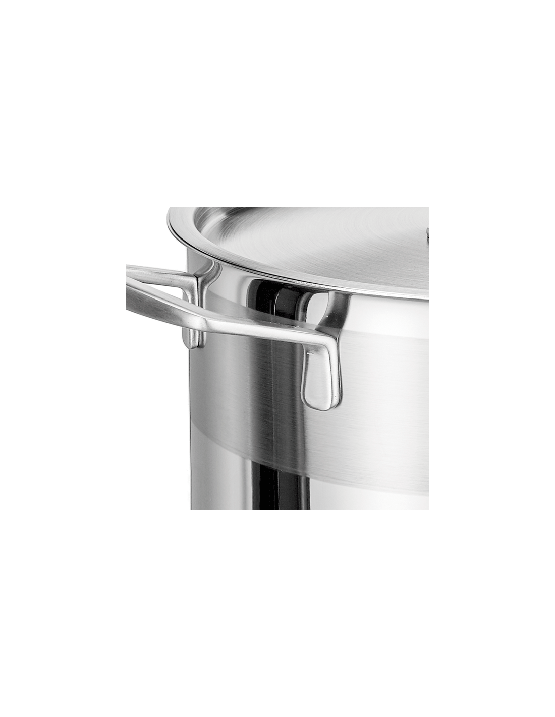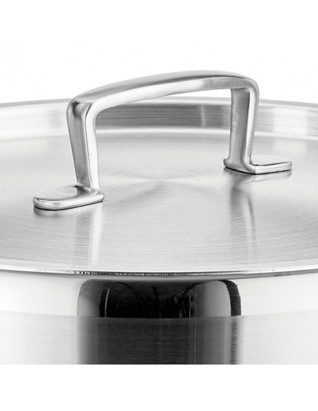 Semi-professional stainless steel pot with gloss finish and decorative fringe.