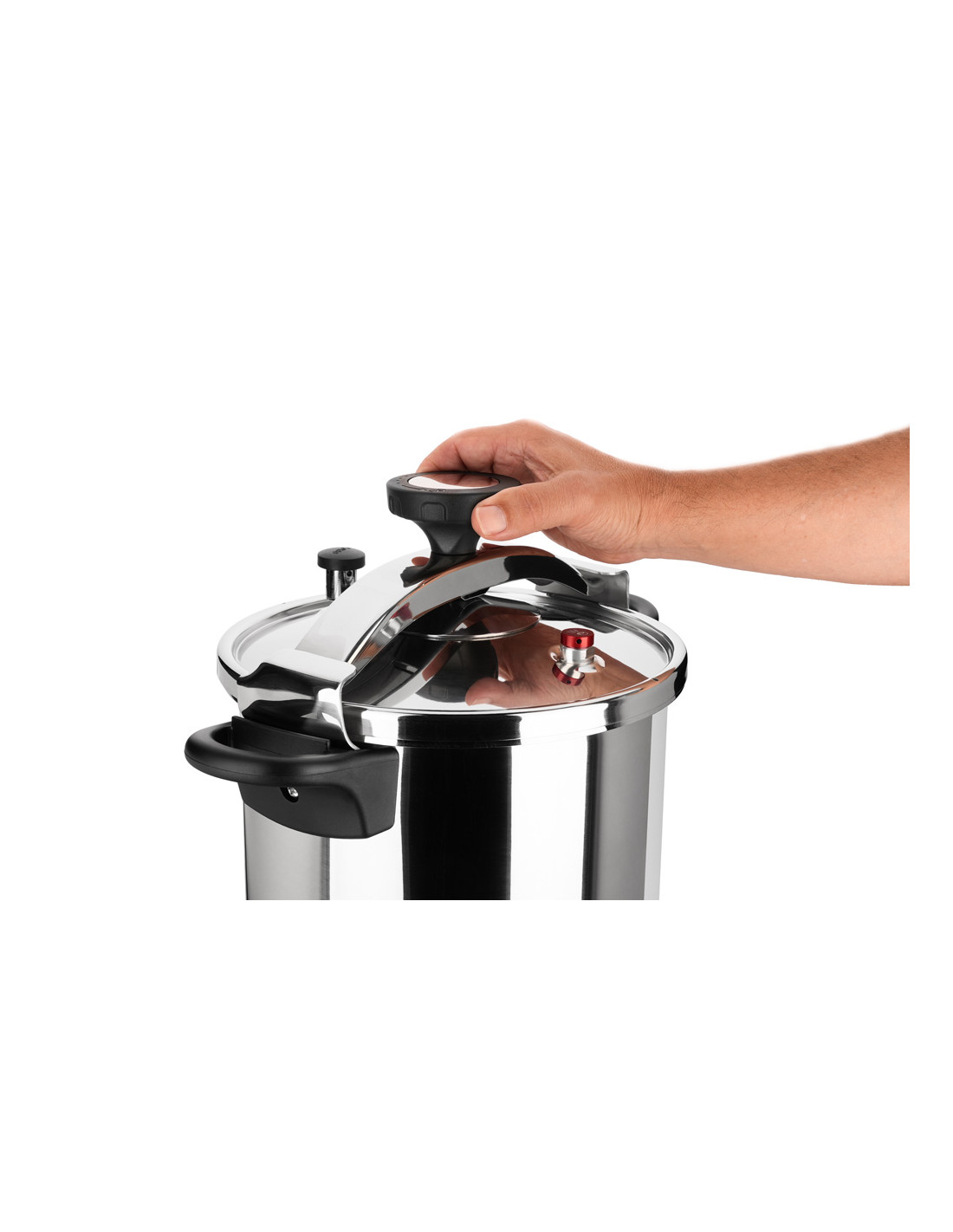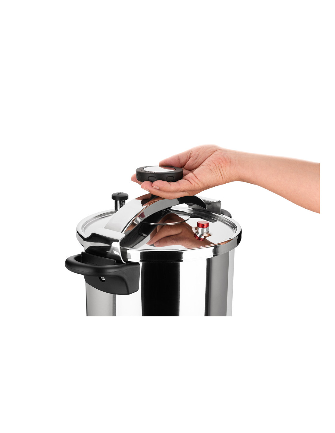 Para mayor seguridad dispone de una válvula de seguridad adicional que actúa como respaldo en caso de exceso de presión, junto con un indicador visual que muestra cuándo hay presión interna, evitando aperturas accidentales.